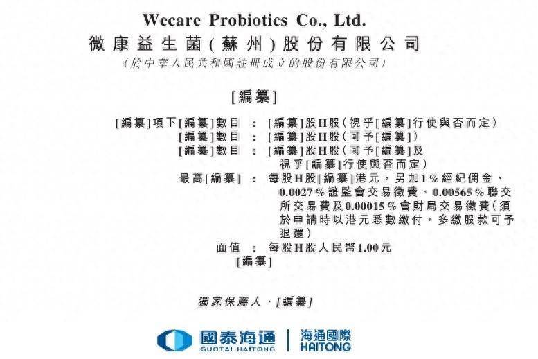 智通财经APP获悉,据港交所4月29日披露,微康益生菌(苏州)股份有限公司(简称:微康益生菌)向港交所主板提交上市申请书,国泰海通为独家保荐人。