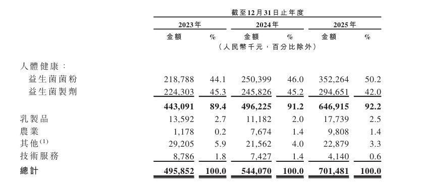 招股书显示,微康益生菌是一家全球领先的生物制造企业,主要从事益生菌菌种的研究与开发、生产及销售。根据弗若斯特沙利文的资料,公司于2025年的益生菌原菌粉产量在全球排名第三,并在亚洲位列第一。