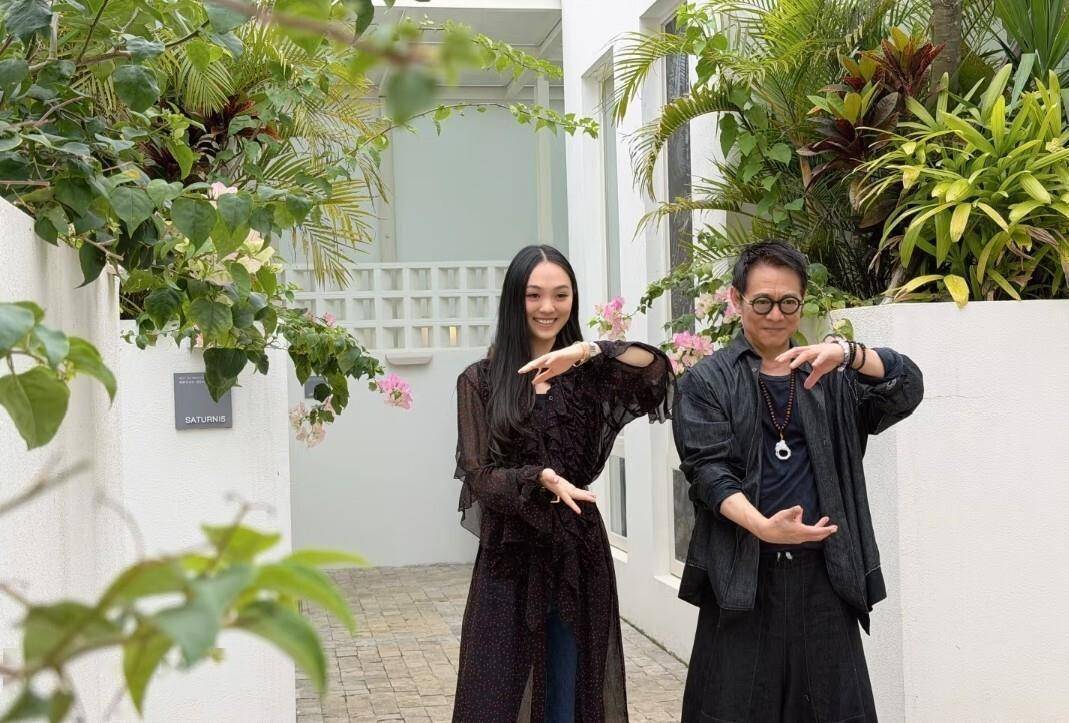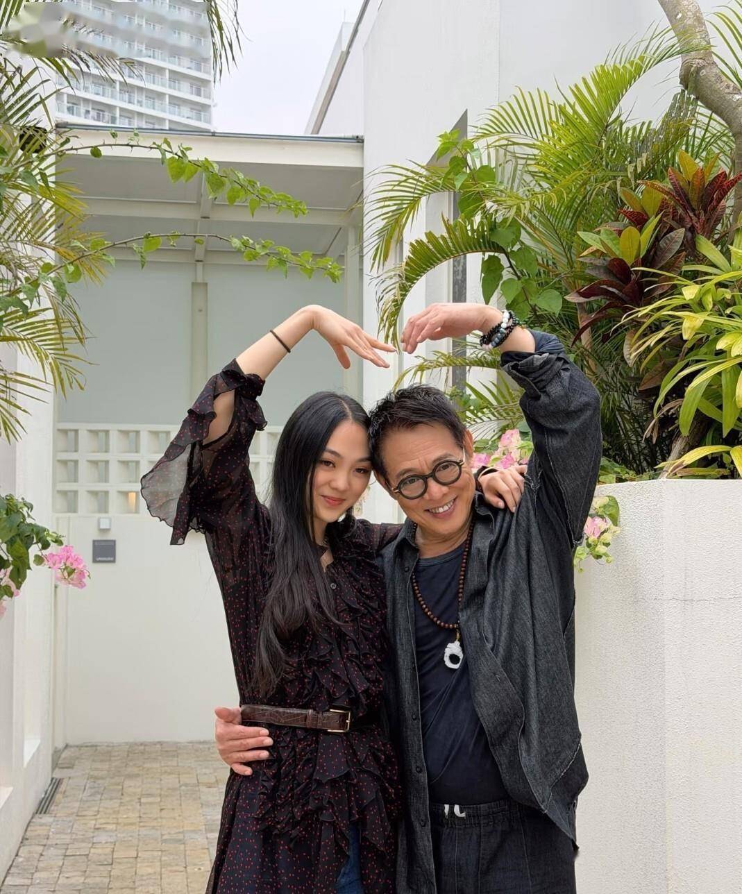 李连杰配文写道:“10天四个城市,轮轴转的工作超负荷咯,还好这三天有‘大号棉袄’陪着我,工作虽累也开心。 ”这句“大号棉袄”是他对女儿的昵称。 父女俩在庭院里比心、摆拍,动作默契又俏皮。 女儿穿着飘逸的黑裙,长发垂肩,李连杰则一身休闲黑衣,抬手比心时带着几分孩子气的认真。